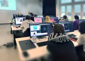 Du arbeitest an High-End-Geräten in unseren hellen Schulungsräumen – ideal für fokussiertes und kreatives Arbeiten.