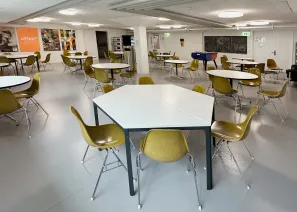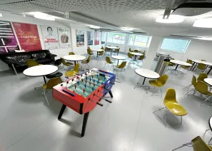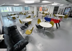 Unsere Mensa mit Sitzgelegenheiten lädt dich ein, deine Pause gemeinsam mit anderen zu verbringen oder in Ruhe zu essen. Für kleine Erfrischungen zwischendurch stehen dir ein Getränkeautomat, ein Snackautomat und eine Kaffeemaschine zur Verfügung. Ausserdem kannst du Mikrowellen und einen Kühlschrank nutzen, um mitgebrachte Speisen aufzuwärmen oder aufzubewahren.